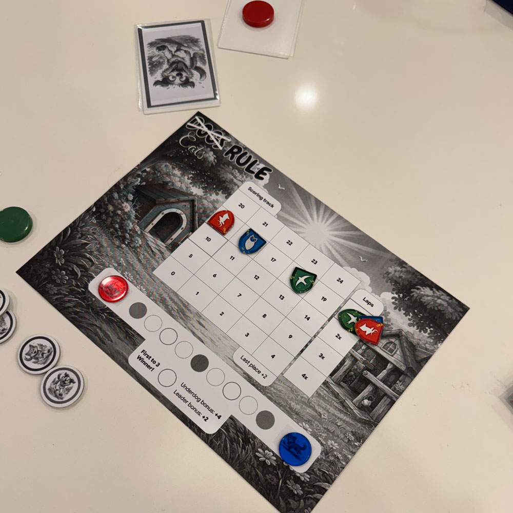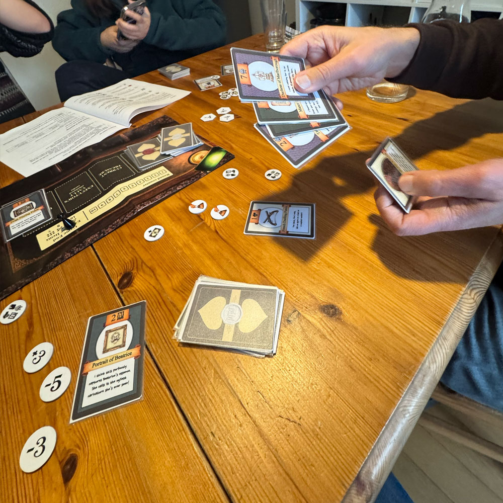 All designs are tested in public environments, Protospiel, Snakes & Lattes design nights, and live events, where players learn directly from the components and begin play without designer guidance.
